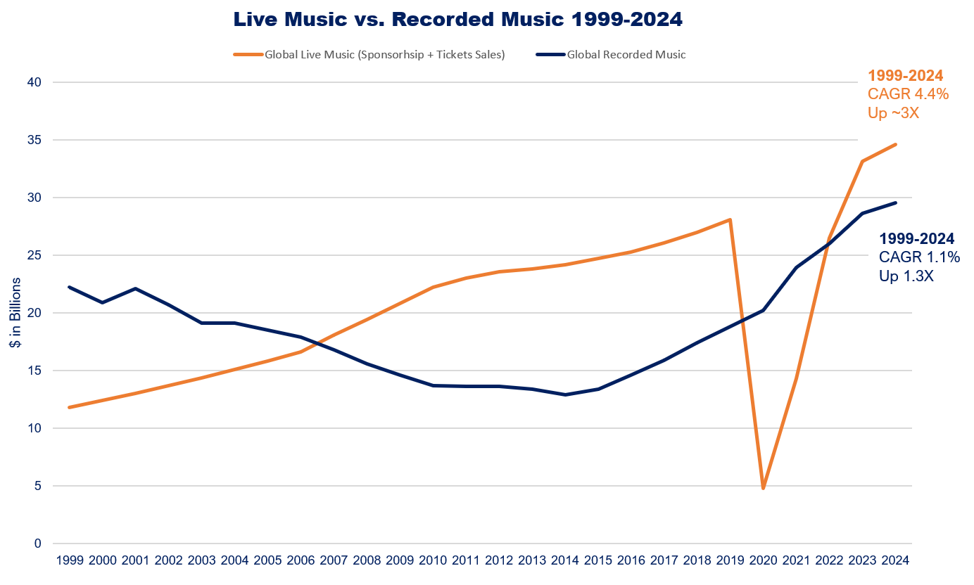Are the graphs of box office sales and music sales adjusted across time for inflation? That seems crucial to understand what is going on. If the sales are going “up” because the dollar just buys less than it did before, that’s a different story.